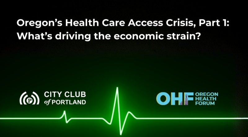 Oregon Health Forum and City Club of Portland present “Oregon’s Health Care Access Crisis, Part 1: What’s driving the economic strain?” on Friday, February 6, from Noon to 1:15pm (Doors open at 11:30am) at University Place Hotel and Conference Center (310 SW Lincoln St., Portland).